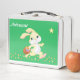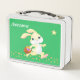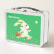 Cute bunny, gold confetti and star on green metal lunch box