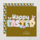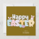 Spread joy and festive cheer this season with this adorable "Happy Easter" Card! Featuring a playful design with pastel polka dots, stripes, and bunny ears incorporated into the bold and colorful "EASTER" lettering on brown background, this card captures the whimsy of Easter perfectly. Personalise it with your family name or a message for a unique and thoughtful touch.
