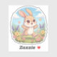 Delight in this adorable hand-drawn bunny hopping through a colourful flower field, with big sparkling eyes and soft rounded features. Set in a bright pastel landscape full of blooming flowers, this charming design is perfect for kids’ t-shirts, mugs, Easter gifts, and spring-themed products.