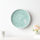 NewParkLane - Sweet, personalised nursery or kids' clock, featuring a cute baby bunny in a wreath with little hearts, against a mint green background. The background colour can easily be changed.