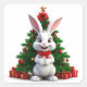 Cute Bunny in Christmas Hat by Decorated Tree Square Sticker