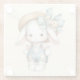 Cute Bunny in Overalls with Straw Hat & Bow Glass Coaster