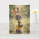 Celebrate Easter with this charming greeting card featuring an adorable bunny dressed in a sunny yellow dress and flower crown, holding a basket of colorful Easter eggs. Surrounded by soft spring light and fluttering butterflies, this whimsical design captures the warmth, joy, and renewal of the season. Perfect for sending cheerful Easter wishes to friends, family, or anyone who loves sweet springtime artwork and cute bunny characters.