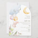Cute Bunny It's a Girl Baby Shower invitation. It's a Girl! Moon. Flowers.