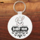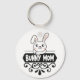 Cute keychain for rabbit lovers featuring a lovely cartoon white bunny with the caption "Bunny mom"