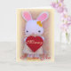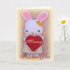 The cutest baby Bunny holding a red heart is ready to wish your mum happy Mother's day. She is white with big pink ears, she wears an elegant little dress and yellow shoes. She has beautiful yellow flowers on her head and she holds a big red heart in her little hands, on the background a colourful wallpaper. She makes this greeting card absolutely adorable. The card comes with the text "Mummy, I love you" but you can change it if you like. Don't forget to customise the text inside the card and make it personal. The bunny and the heart are my original creations. Lulu the bunny can be viewed in my online store AresCrea on Meylah.com