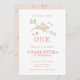Cute Bunny Pink Floral Kid Girl's First Birthday Invitation