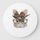 Cute Bunny Rabbit Face Leopard Coquette Bow Glasse Large Clock