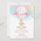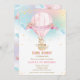 Cute Bunny Rabbit Hot Air Balloon 1st Birthday Invitation