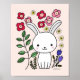 Cute Bunny Rabbit Nursery Art Poster Floral Animal
