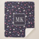 Cute Bunny Rabbit Pattern Monogram Initials Purple Sherpa Blanket