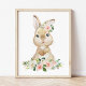 Cute Bunny, Rabbit, Pink Flowers, Girl Nursery Poster