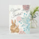 The baby shower invitation features a mum and baby bunny rabbit. They are sitting among soft early spring coloured flowers. This design is a great choice for girls and neutral parties. ~