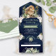 Cute Bunny Sage Green Floral Navy Blue Baby Shower All In One Invitation