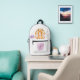 Embrace charm and whimsy with this delightful printed backpack showcasing a cute bunny surrounded by vibrant violet flowers on a serene grey and white backdrop. Ideal for school, outings, or carrying everyday essentials, this backpack merges style with functionality. A perfect choice for those who adore adorable bunnies and floral elegance.