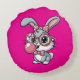 Cute Bunny with Glasses Blowing Bubble Gum Round Cushion