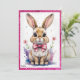 🎀🐰 How cute is this little bunny with a pink bow birthday invitation?! 🌸🎈