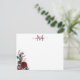 Modern Elegant Chic Girly Script Modern Christmas Holiday Floral Burgundy Red Rose Holly Berry Leaves Branches Winter Botanical Monogram Note Card