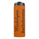 Get the party started with these cute thermal tumbler that are easy to personalise for your bachelorette party, hen night, or girls' weekend! Modern minimalistic style features a personalised name with bold black lettering on a burnt orange background. Personalise with two lines of custom text. All text and background colour can be edited per your liking.