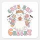 Cute But Creepy Halloween design with a ghost holding a pumpkin, flowers and text design and a couple of little bats, a great Halloween design for any age!