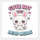 Adorable bunny character with sarcastic humour phrase “Cute but Dead Inside.” Perfect mix of soft aesthetic and dark humour. Great sticker design for laptops, phone cases, journals, and cosy fashion items. A relatable expression for tired but stylish personalities.