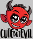 Vector cartoon illustration of a devilishly cute little devil with big eyes with Cute But Evil text. Keywords: devil, hell, cute, demon, evil, satan, halloween, monster, horns, horror, adorable, sweet, devilishly, devilish, precious, endearing, loveable, lovely, appealing, engaging, delightful, dear, darling, winning, winsome, charming, enchanting, attractive, pretty, adorbs