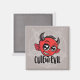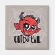 Vector cartoon illustration of a devilishly cute little devil with big eyes with Cute But Evil text. Keywords: devil, hell, cute, demon, evil, satan, halloween, monster, horns, horror, adorable, sweet, devilishly, devilish, precious, endearing, loveable, lovely, appealing, engaging, delightful, dear, darling, winning, winsome, charming, enchanting, attractive, pretty, adorbs