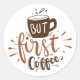 Cute But First Coffee Quote Brown Lettering Classic Round Sticker for the true coffee addict you are