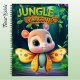 Personalise the back cover of this adorable "Jungle Welcome" notebook! Featuring a unique whimsical wild and confident baby Girl Butterfly cartoon graphic Flying Insect animal character in a lush nighttime enchanted forest scene, inviting you into a world of imagination and creativity. This girly Pollinator design is perfect for woodland safari lovers, nature wildlife fans, and anyone who enjoys cute and cosy vibes.