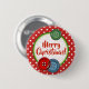 Adorable white polka dot, red background, blue red and green buttons Merry Christmas Button.