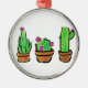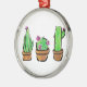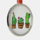 Three cute cacti with pink flowers in little terra cotta pots- a fun south western design!