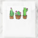 Three cute cacti with pink flowers in little terra cotta pots- a fun south western design!
