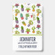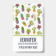 Name badge with a cute and fun pattern. Illustrations of different cactus, sitting in flower pots with cartoony happy smiling faces.