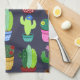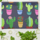 Get in on the cactus craze! Decorate your kitchen with this whimsical kitchen towel. The cutesy little cactus pattern has different sized and shaped cartoon style cacti and flowers with little pots. The colours are bold and fun!