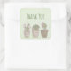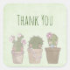 Thank You stickers with a whimsical design. 3 cute cactus all in a row with smiling faces sitting in a flowerpot each wearing some jewellery.e.