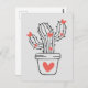 Cute cactus with hearts in green postcard
