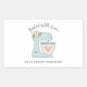 A cute blue cake mixer with flower decorates this large rectangle baked with love sticker. Personalise it with your name. Designed for you by blackberry Boulevard.