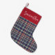 Cute Calligraphy Script Navy Blue Plaid Pattern Small Christmas Stocking