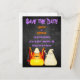 This personalised Halloween Save the Date Holiday Wedding Announcement features a cute Bride and Groom Candy Corn couple. They are dressed in Halloween costumes are so in Love.