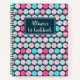 This adorable personalised recipe notebook features a dots pattern, with cute sweet things on some of the dots - cupcakes, candies, cherries, and lollipops. Simply customise it with the little girl's name of your choice for an adorable, unique gift! Great idea for the young baker or chef! The background colour can be customised to a different colour, if desired (shown in dark navy blue).