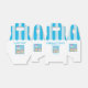 Cute, blue awning and candy shop windows showing sweet candies inside. Templates for a toddler's birthday created to easily use.