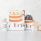 Cute family big and small capybara in festive caps blowing out candles on a birthday cake, red and green flags, colourful confetti. Inscription Capy Birthday
