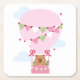 Cute Capybara Hot Air Balloon Pink Birthday Party Square Paper Coaster