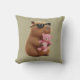 Cute Capybara Hugging Teddy Bear Sage Green Cushion