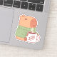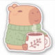 A cute capybara wearing a green cosy sweater while holding on to a cup of hot coffee. Perfect for capybara and coffee lovers! ♥