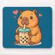 Cute Capybara Kawaii Anime Drinking Bubble Tea Lov Mouse Mat