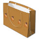 This adorable Halloween gift bag features a cute capybara wearing a witch hat and holding a pumpkin. Perfect for autumn, fall parties, or trick-or-treat gifts. The warm orange and beige tones make it a cozy fall aesthetic piece for kawaii lovers and animal art fans. Great for seasonal packaging or collectors who love cute capybara designs.