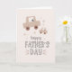 Celebrate Father's Day with a charming twist! This adorable greeting card features a playful design of two stylised cars, a larger one representing dad and a smaller one for the little one. Set against a soft, pastel background sprinkled with subtle star accents, the front of the card reads "happy FATHER'S DAY" in a friendly, welcoming font. It's a delightful way to express love and appreciation for the car-loving dad or for fathers who appreciate minimalist and cute art styles. Perfect for dads who share their love for vehicles with their children, making it an ideal choice for Father's Day.