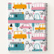 The sweet vehicle pattern, featuring teal vans, pink buses, and yellow and teal cars, complemented by pink hearts, trees, black-lined mountains, and doodle dashes, adorns both front and back covers. Customise the front cover using three editable text boxes: "Rebecca's," "Imagination Avenue," and "Doodle Adventure," setting the stage for boundless creativity!