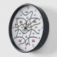 Cute boy car-themed bedroom or playroom wall clock decor with cars, roads, and different vehicle illustrations. Analogue clock with numbers in various colours for children to learn the time.